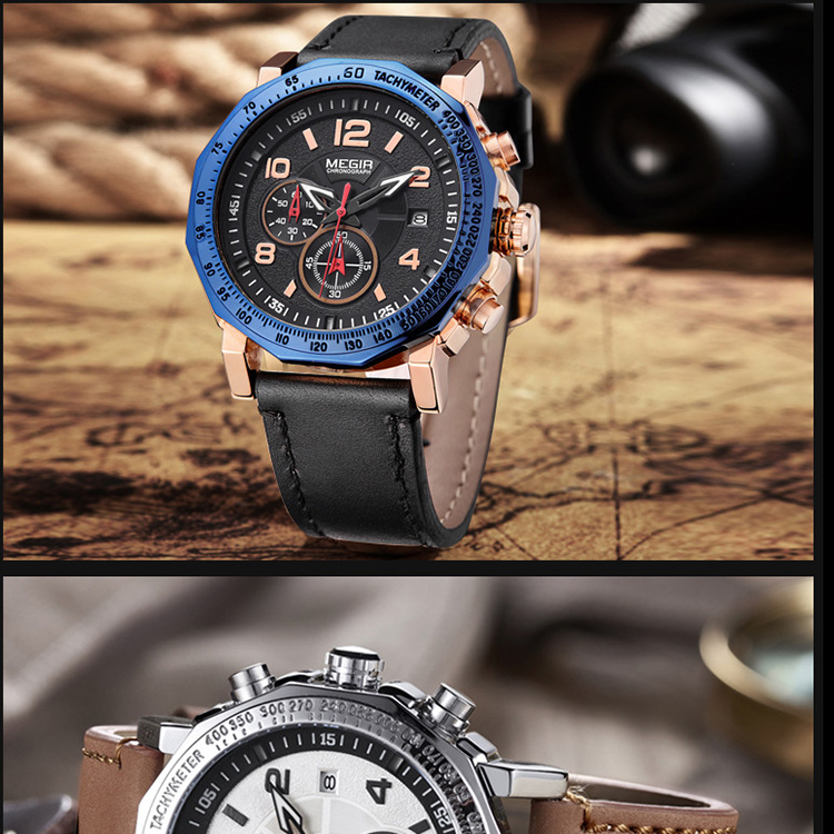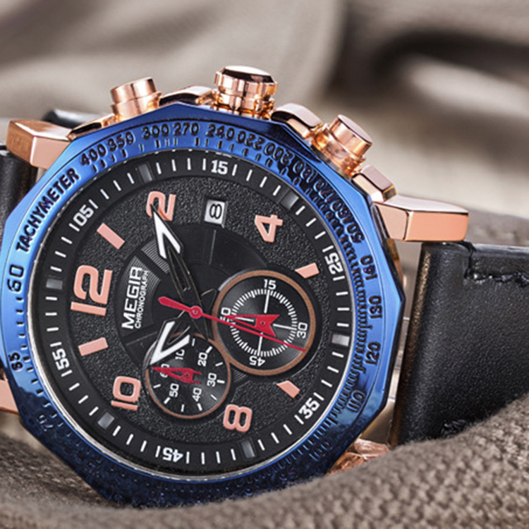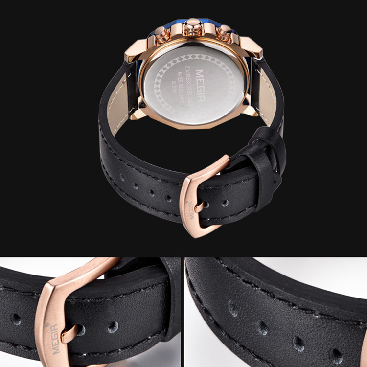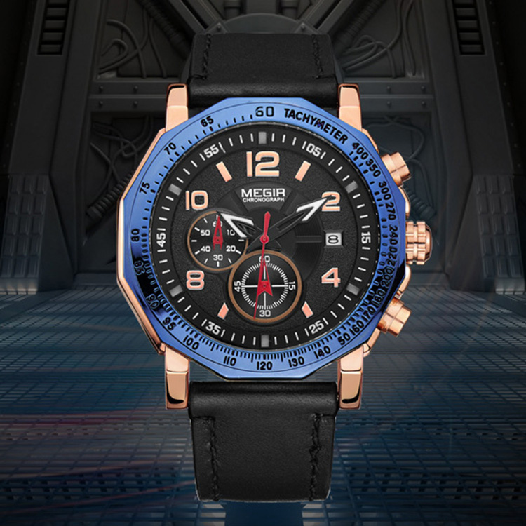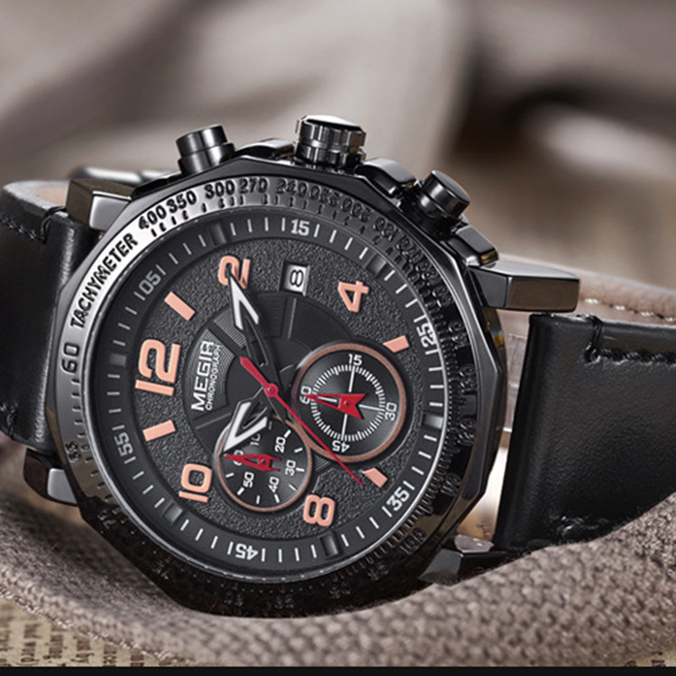 Men's Multi-functional Waterproof Sports Leather Strap Watch