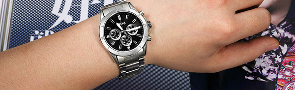 precise quartz movement, long life battery, stainless steel watch band and back cover, key scratch resistant mineral surface, safe fold over claspWater resistant to 30 m: In general,withstands splashes or brief immersion in water,but Not Suitable for Swimming or Bathing.