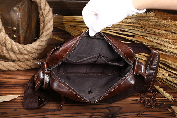 Interior liner featuring a back zip pocket, two slip pockets, and a main compartment.