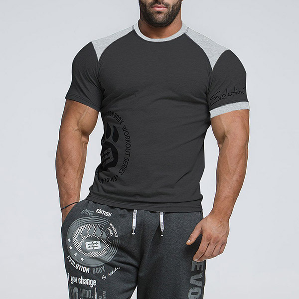 Men's Short Sleeve Colour Matching Muscle Fitness T-shirt
