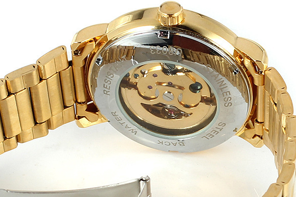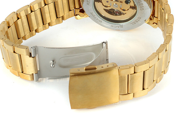 Men's Skeleton Military Self-Wind Automatic Mechanical Stainless Steel Wrist Watches-Gold