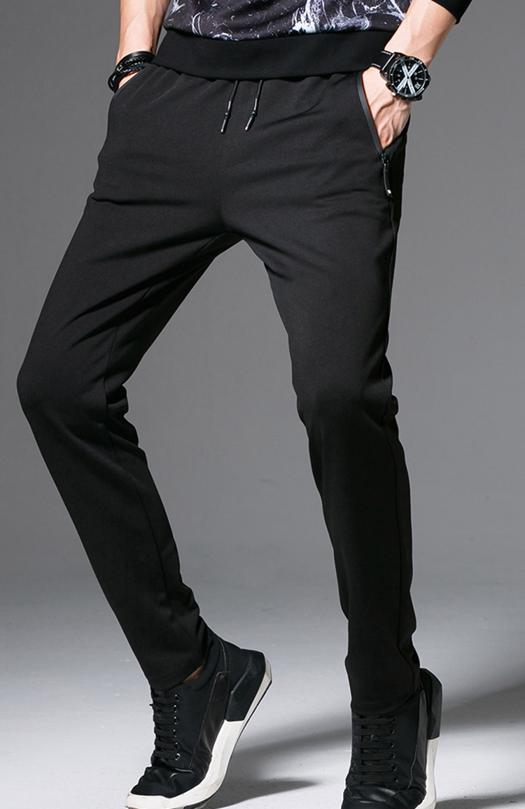 Men's Slim Pants Sweatpants Solid Color Pocket Zipper Trousers