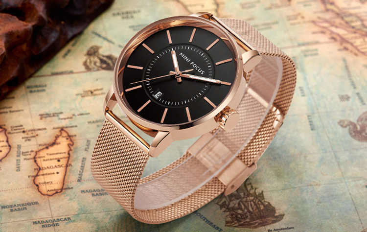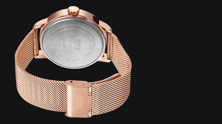 Watch case is stainless steel. Round dial, Stainless Steel Mesh Band.