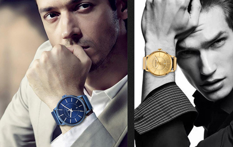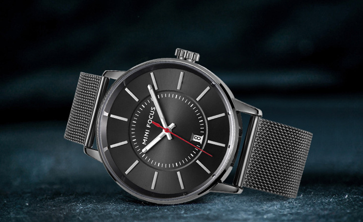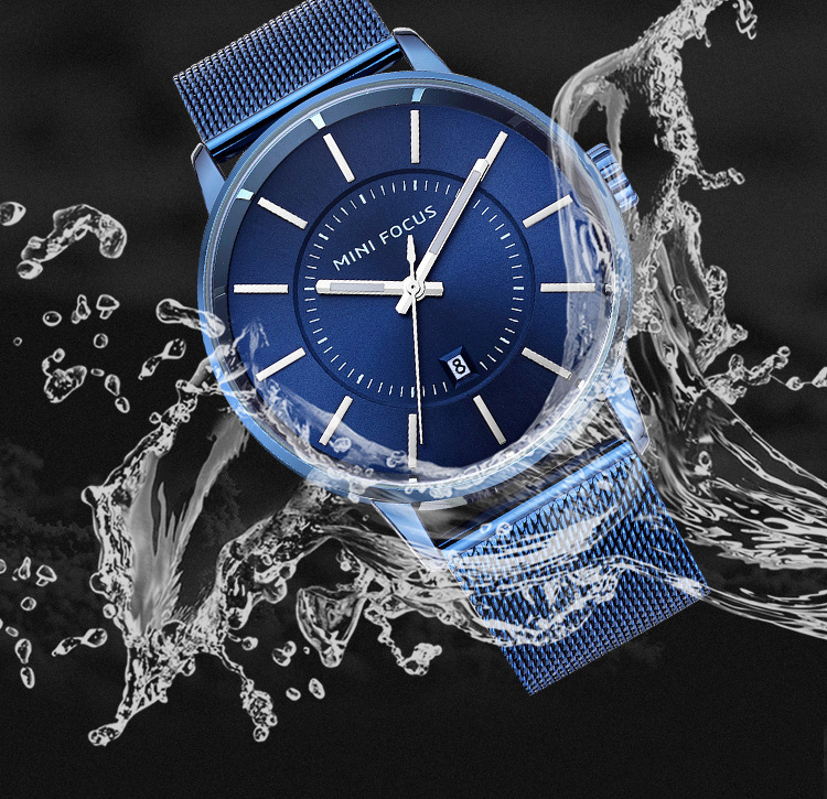 Men's Stainless Steel Mesh Band Waterproof Wrist Watch