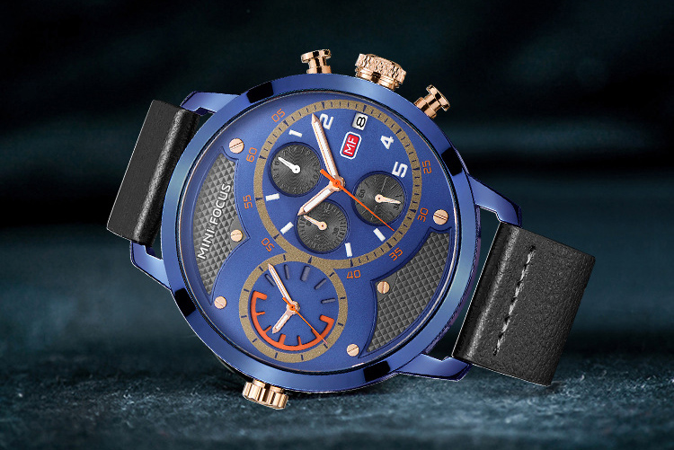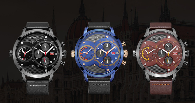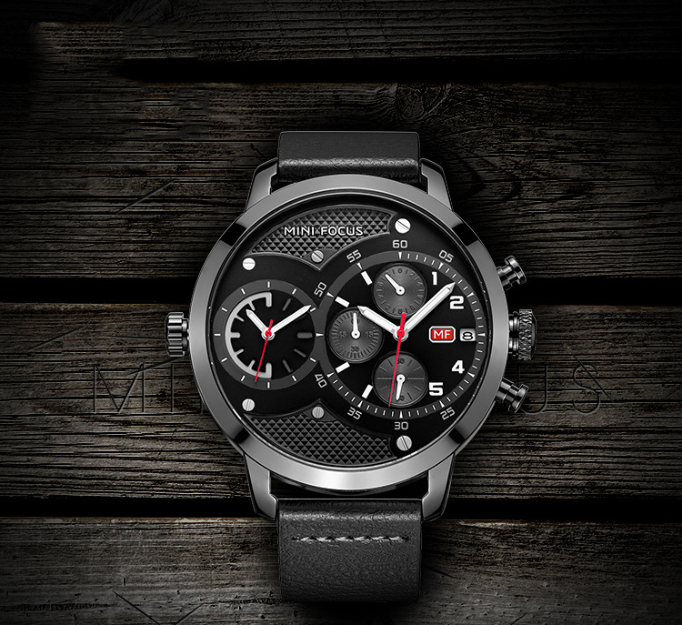 Men's Watches Double Movement Watch Multifunction Three Sub Dials With Leather Band Watch Date Window
