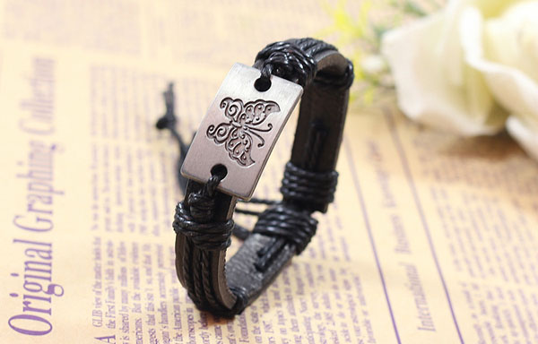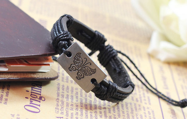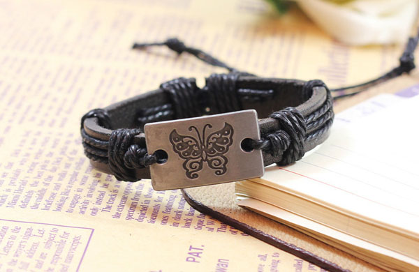 Metal Butterfly PU Leather Bracelet