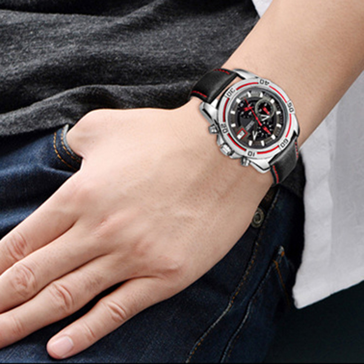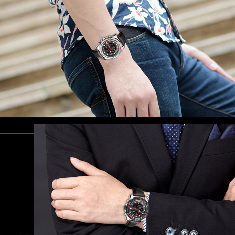 Fashion and casual style, display with leather strap, mineral glass helps resist scratches.