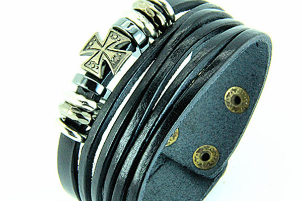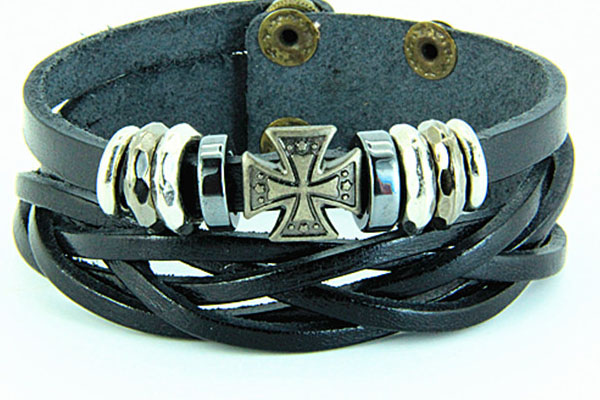 Multilayer Cross Braid PU Leather Bracelet With Braided Rope