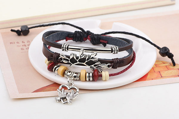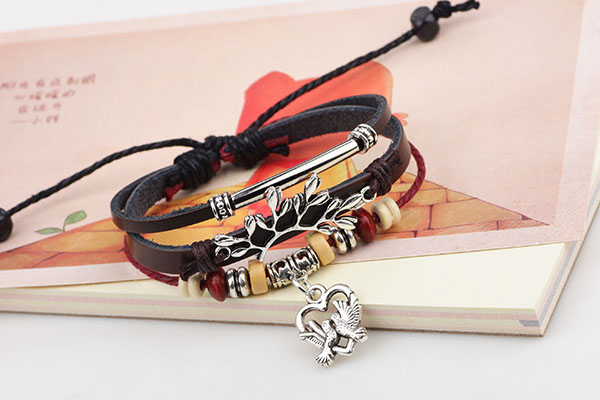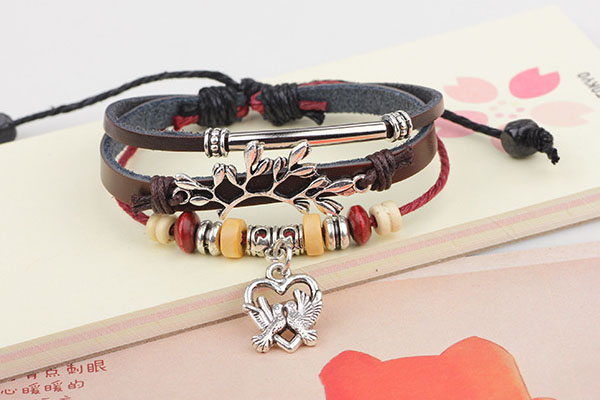 Multistrand Beaded Bangle Magpie Couple Hearts Leather Wrap Bracelet