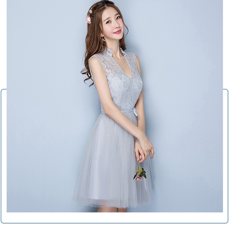 New Fashion Sleeveless Deep V- Neck Lace Party Dress