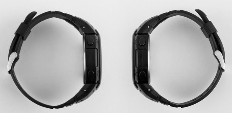 Watch case is stainless steel. Round dial, silicone band.