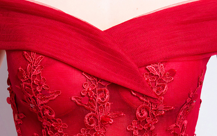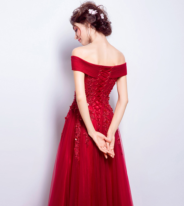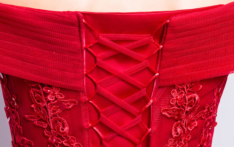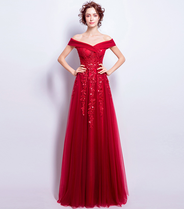 New Red Beading Lace Floor Length Sexy Off the Shoulder Lace Up Back Party Gowns