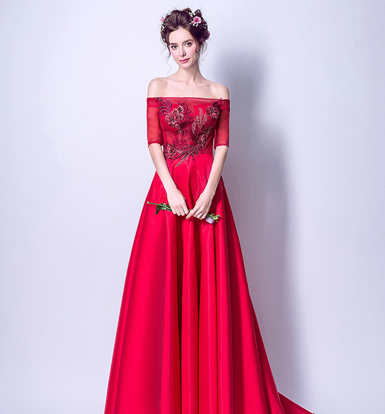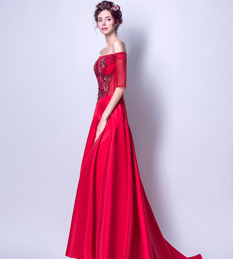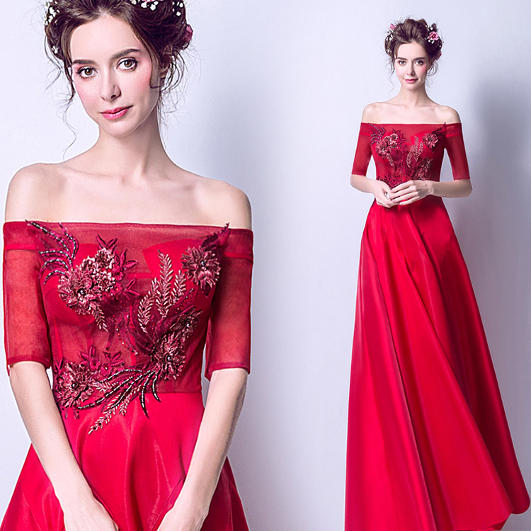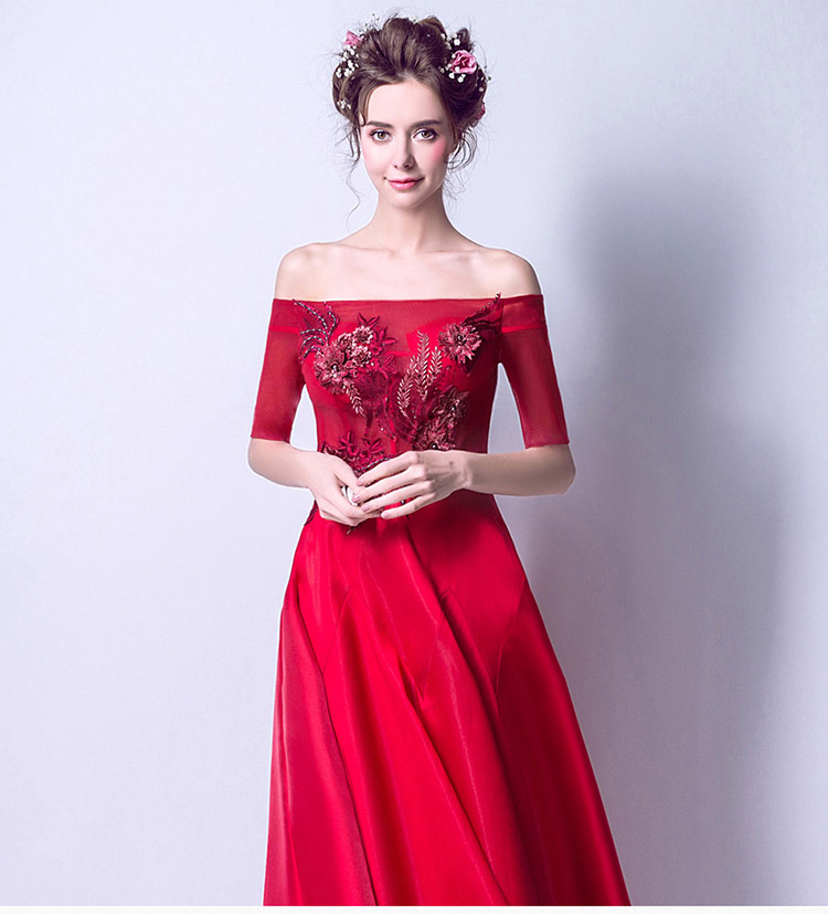 Off The Shoulder Half Sleeves Long Prom Evening Dresses