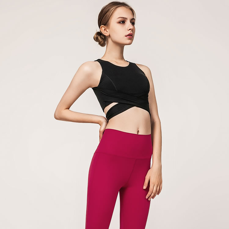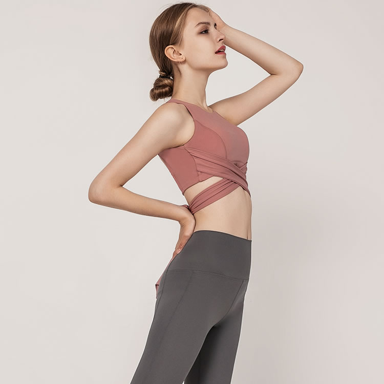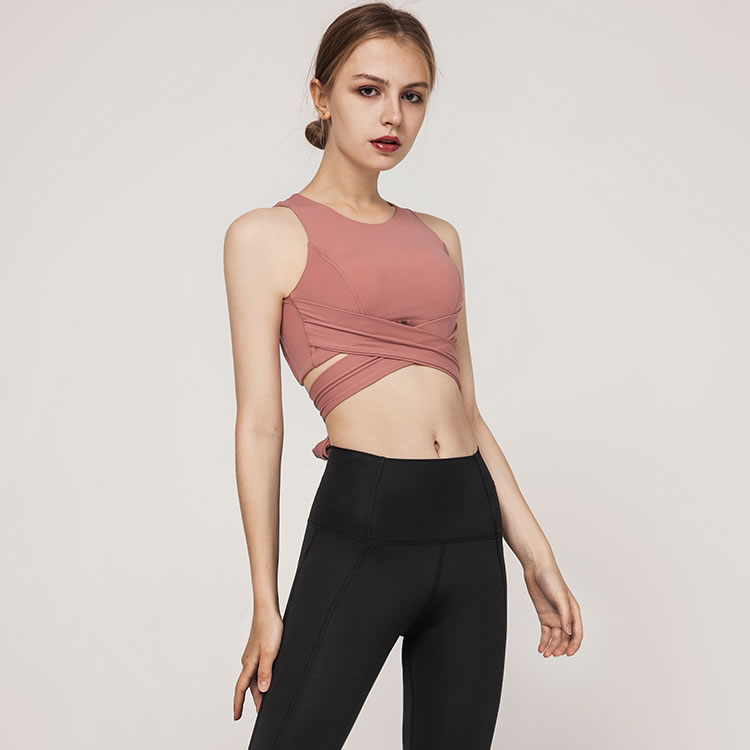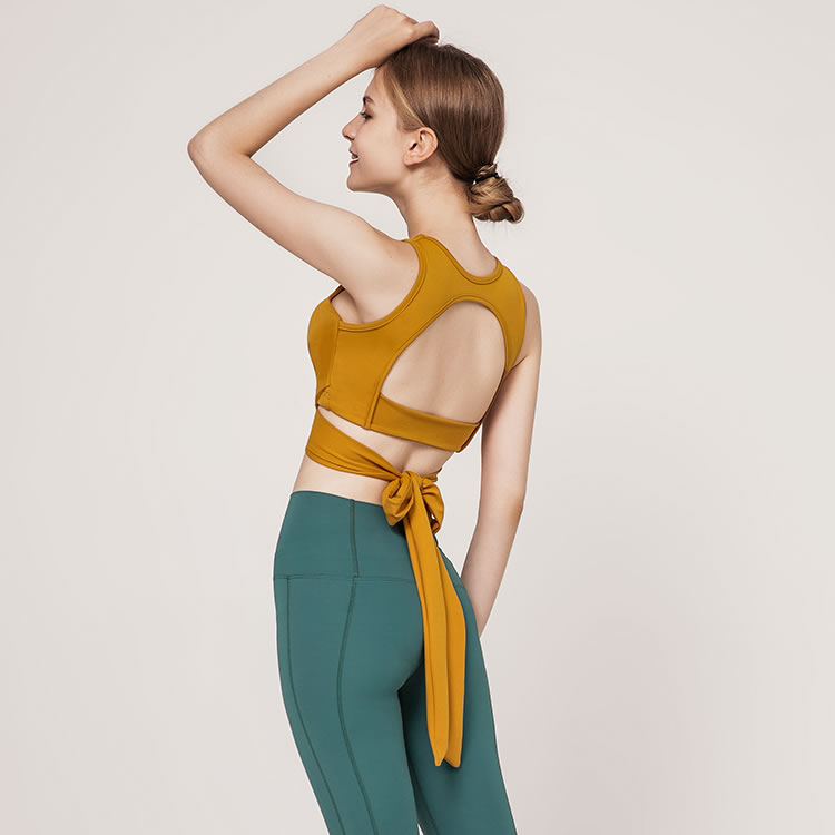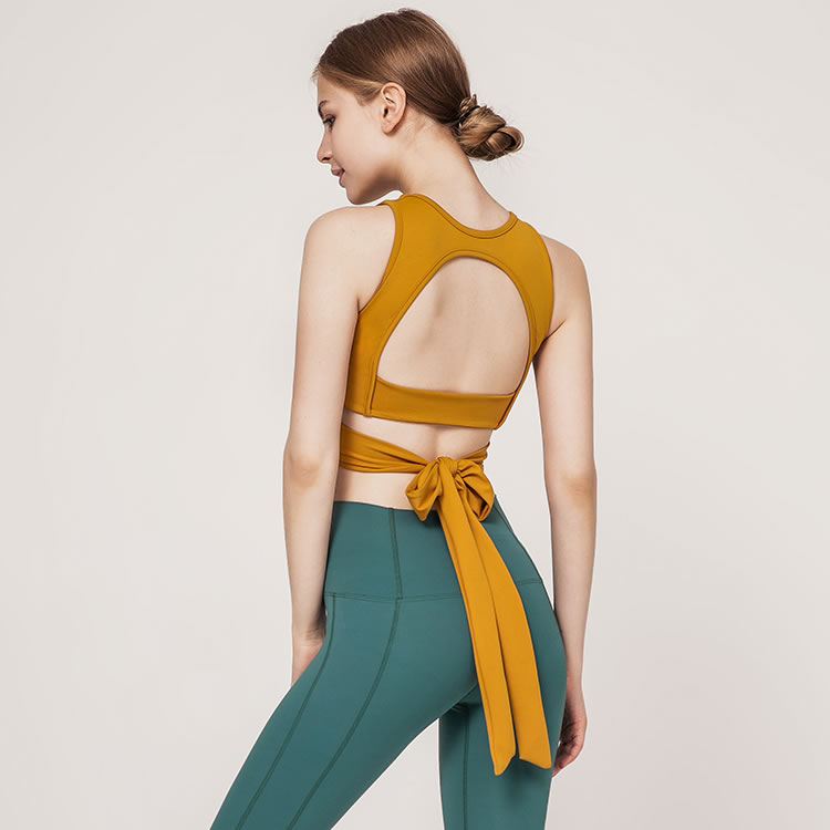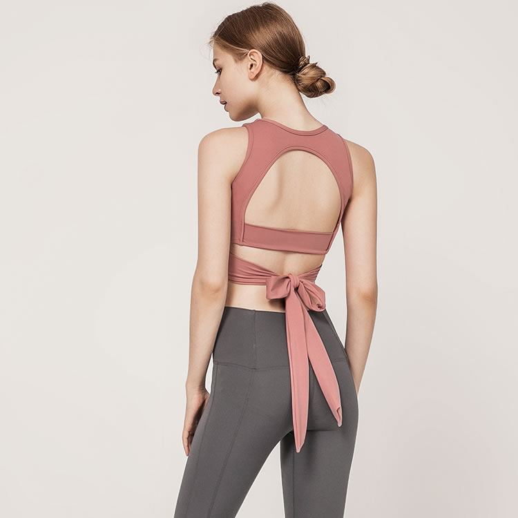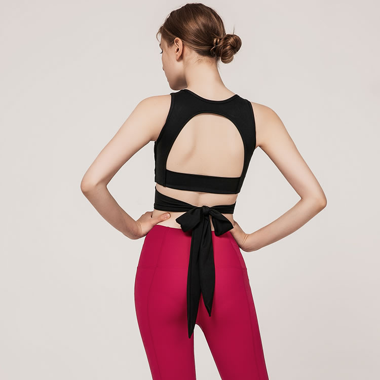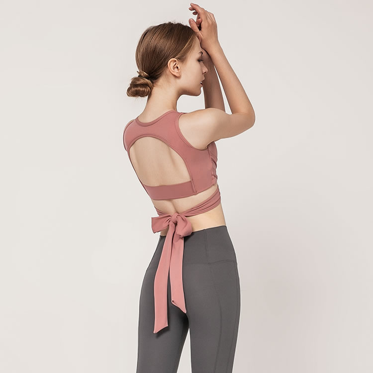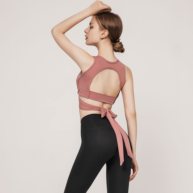 Item: Open back sexy sports bra wide bandage tie bra yoga top.