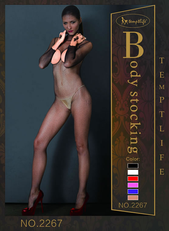 Go bold in this black fishnet bodystocking featuring open cups, a sheer bodice, and an over the toe style. (Panty not included.)