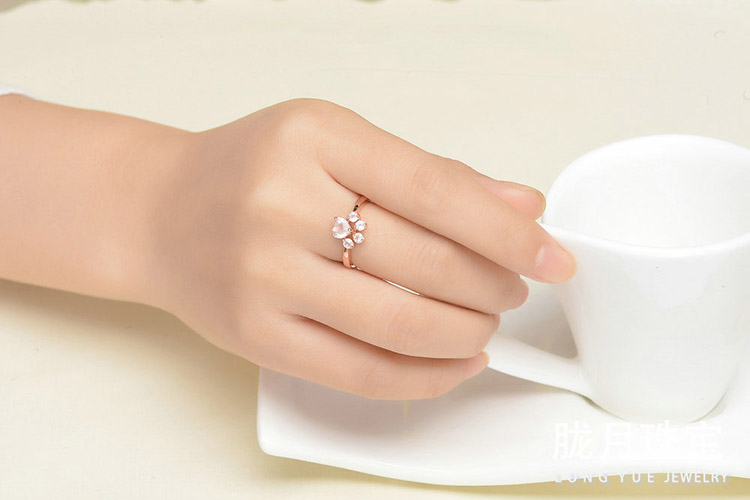 Cute rose crystal ring consist of heart cut, round crystal, heart crystal and rose gold prong setting.
