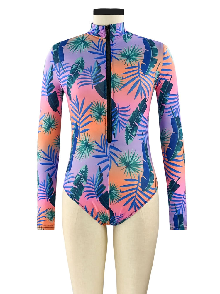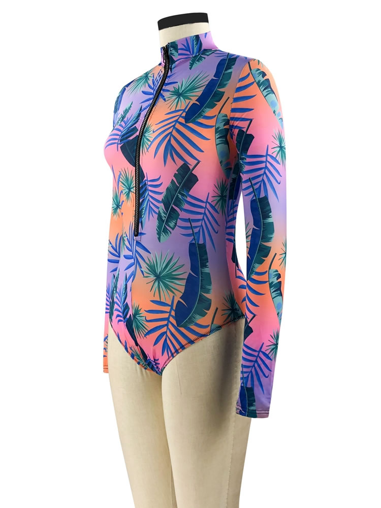 Let your babe welcome you aboard in this sexy one piece swimsuit featuring a plunging neckline with a zipper closure, long sleeves, high cut sides, and a cheeky cut back.