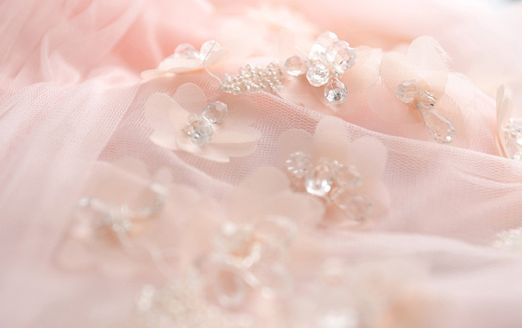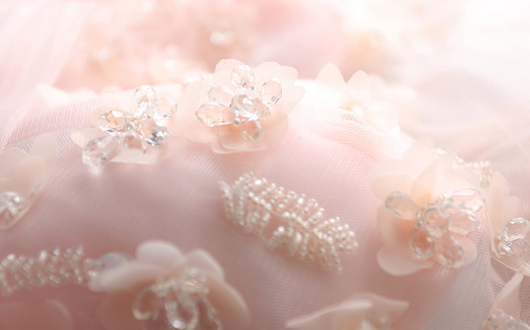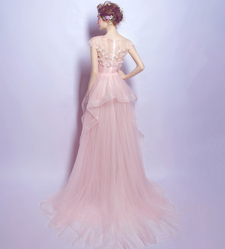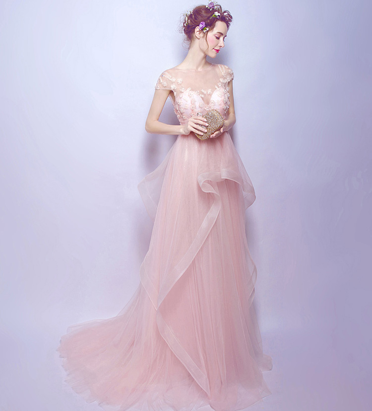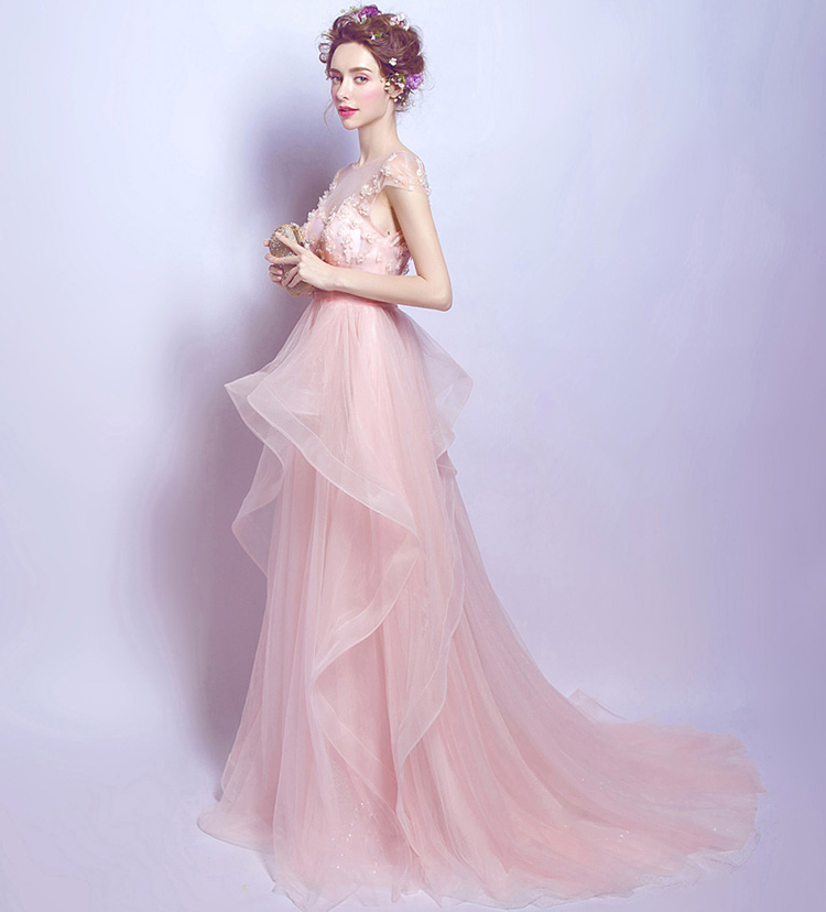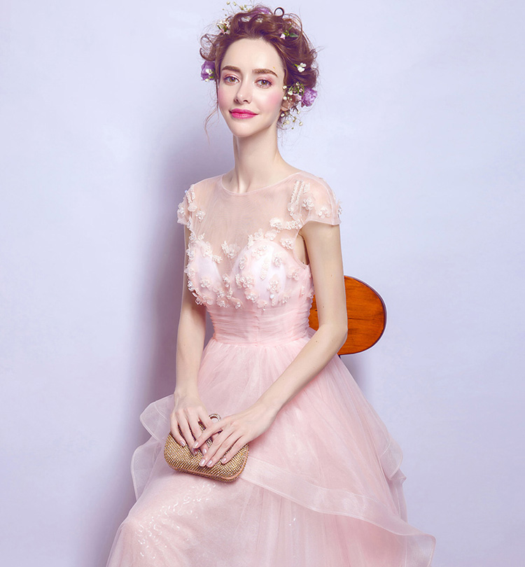 Pink Crystal Beads Flowers Long Evening Dress