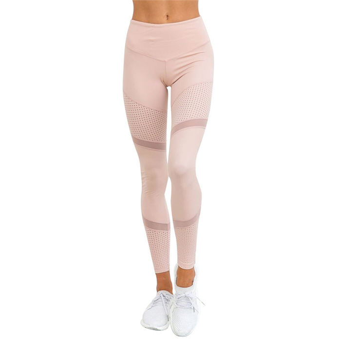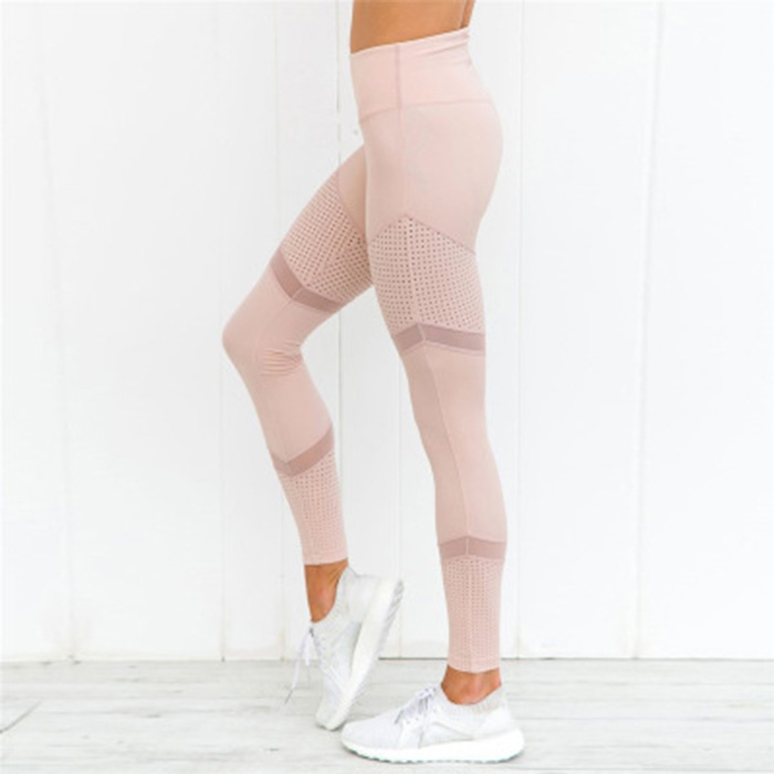 Pink High Waist Splice Mesh Sports Yoga Leggings