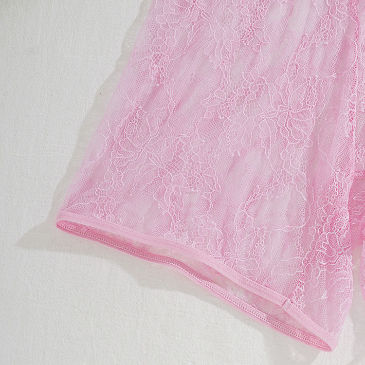 This delightful pink lace lingerie set is perfect for those who love a touch of romance in their intimate attire. The bra features intricate floral patterns that enhance the natural curves, while the matching high-waisted shorts offer both comfort and style. Ideal for anyone looking to feel feminine and alluring.