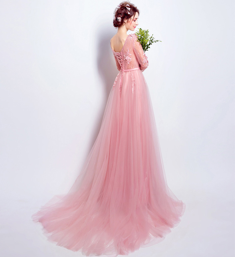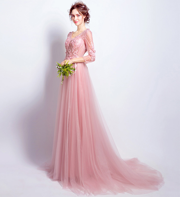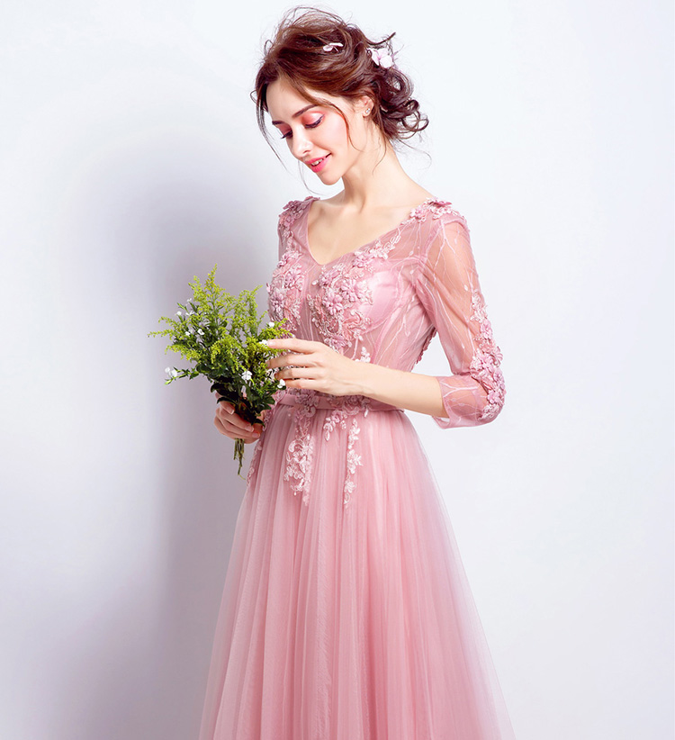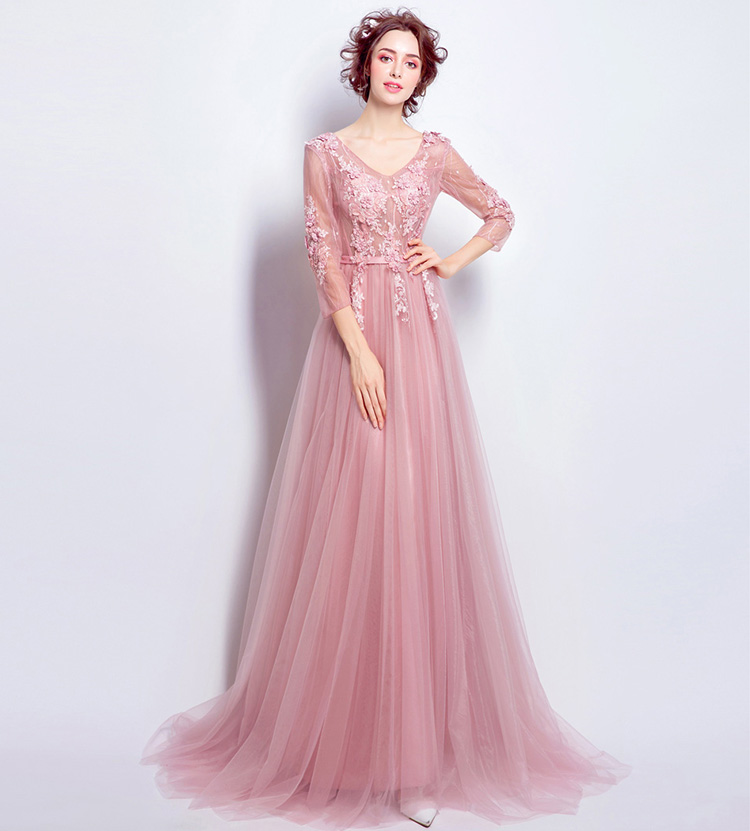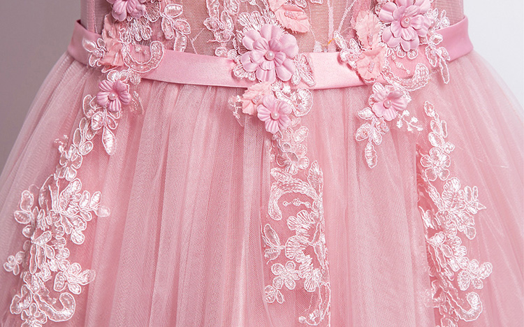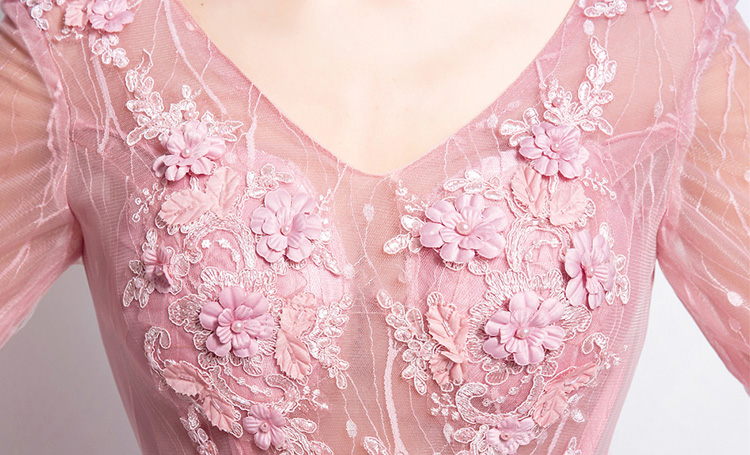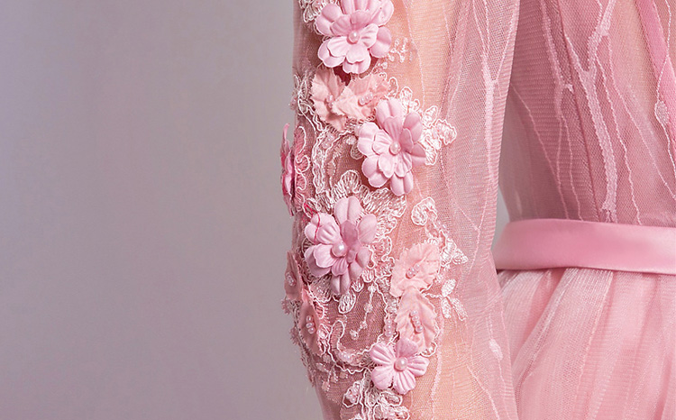 Pink Lace Flowers Evening Dress