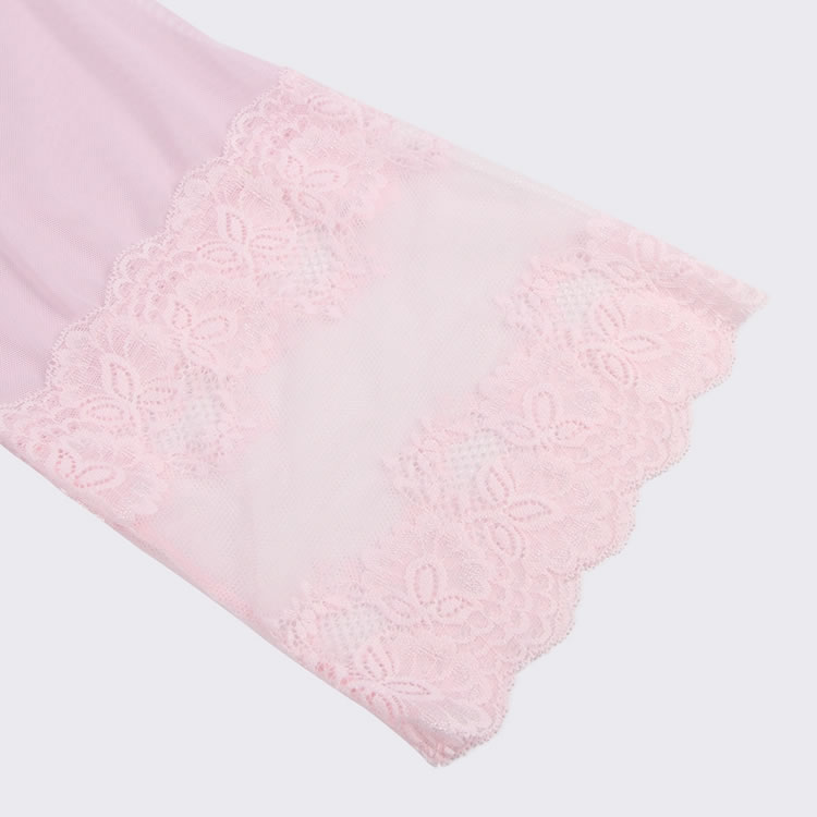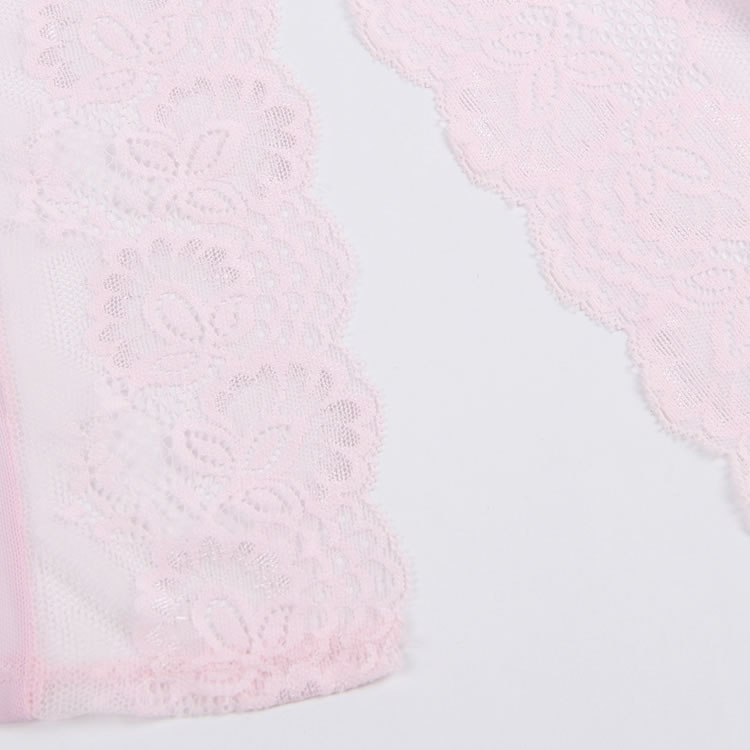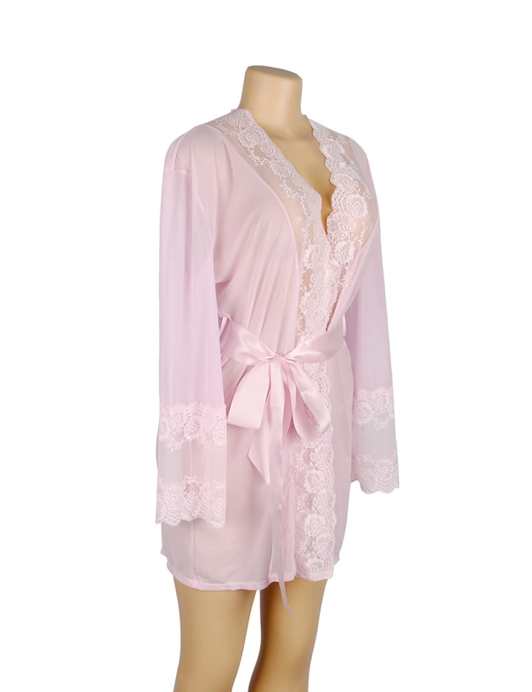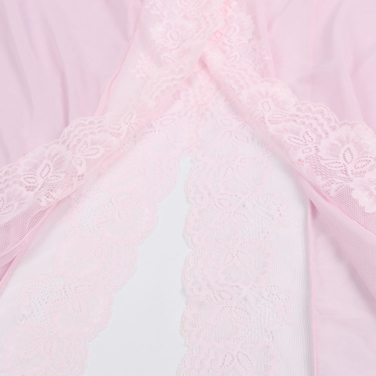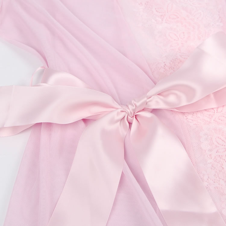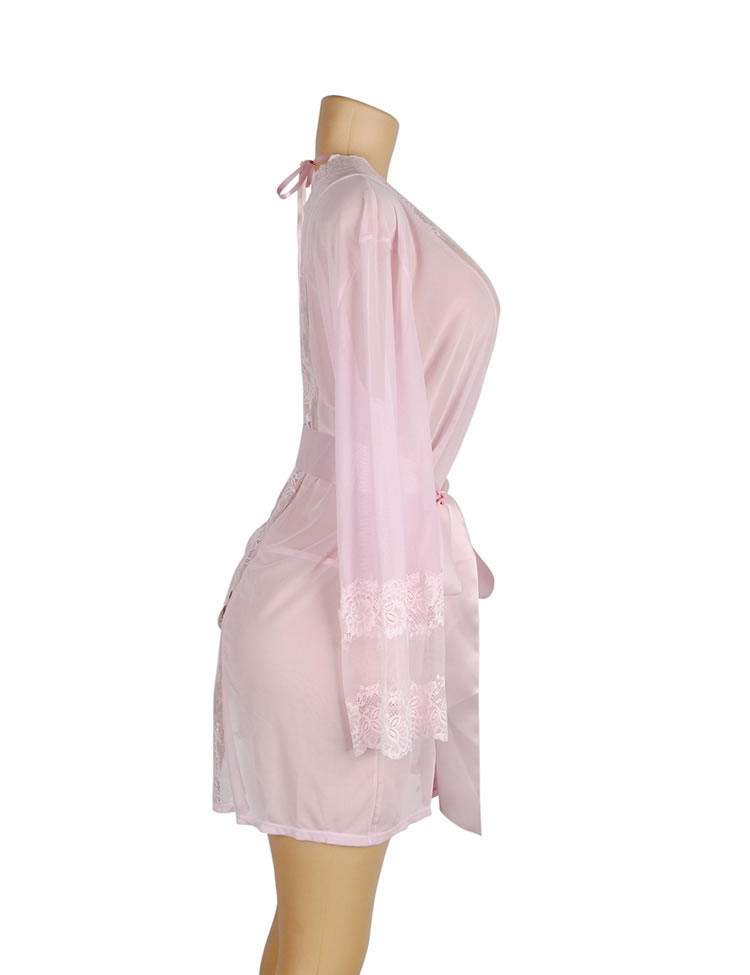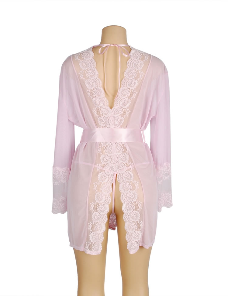 Pink Lace Sexy Hollow Out Back Design Robe Lingerie with Panties