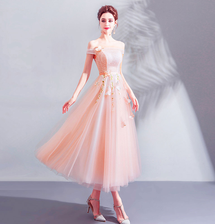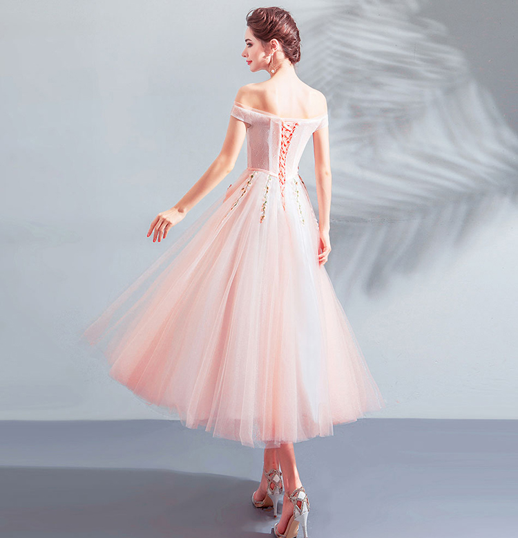 Pink Sexy Off The Shoulder Lace Bridesmaid Dress