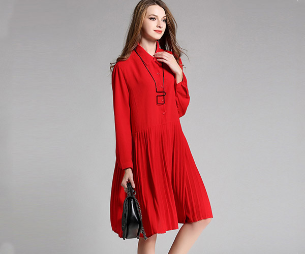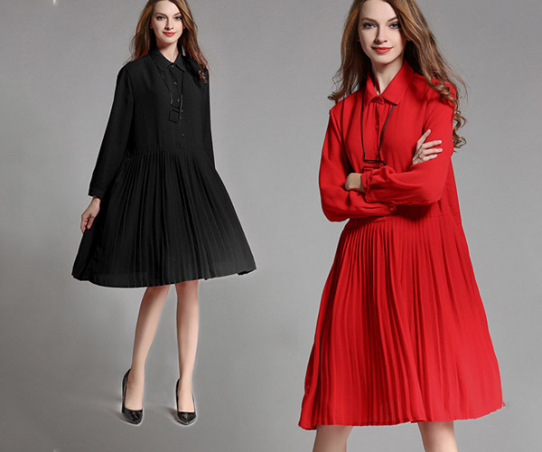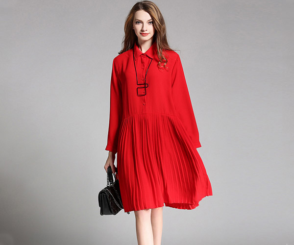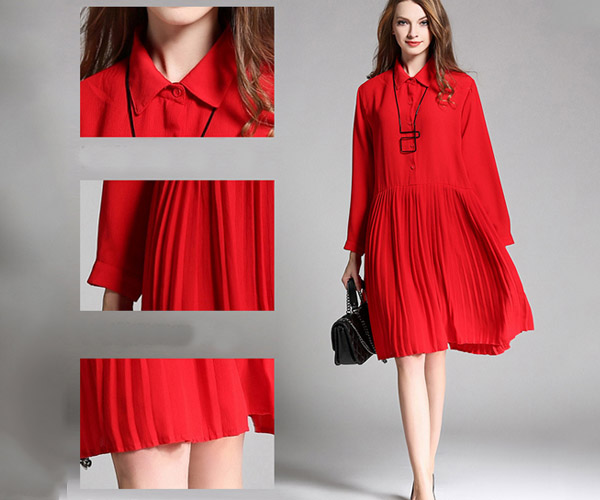 Plus size pleated A-line Solid Chiffon Elegant Dress
