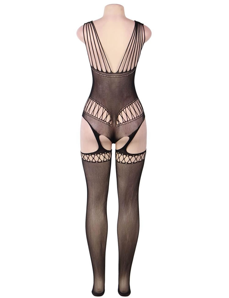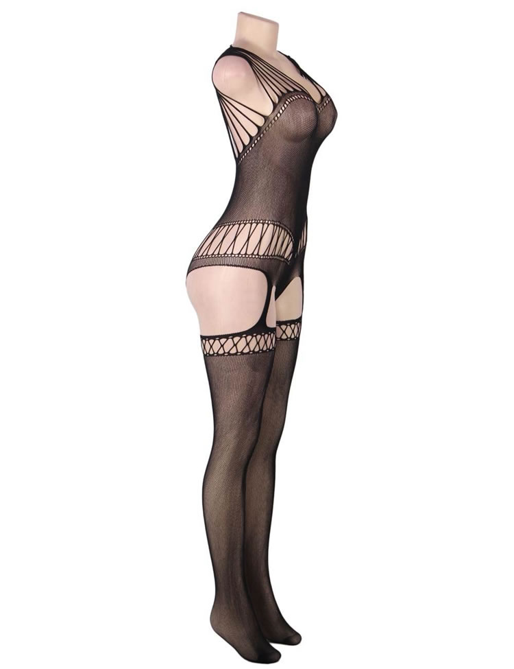 Your lover will devote himself to your curves in this ultra sexy plus size bodystocking featuring sheer cups, slashed shoulder straps, a sheer bodice, and an over the toe style. (Panty not included.)