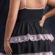 Plus Size Black and Pink Lace Trim Lingerie Dress
