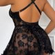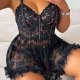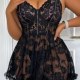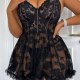 Plus Size Black Floral Lace Babydoll with Ruffle Hem