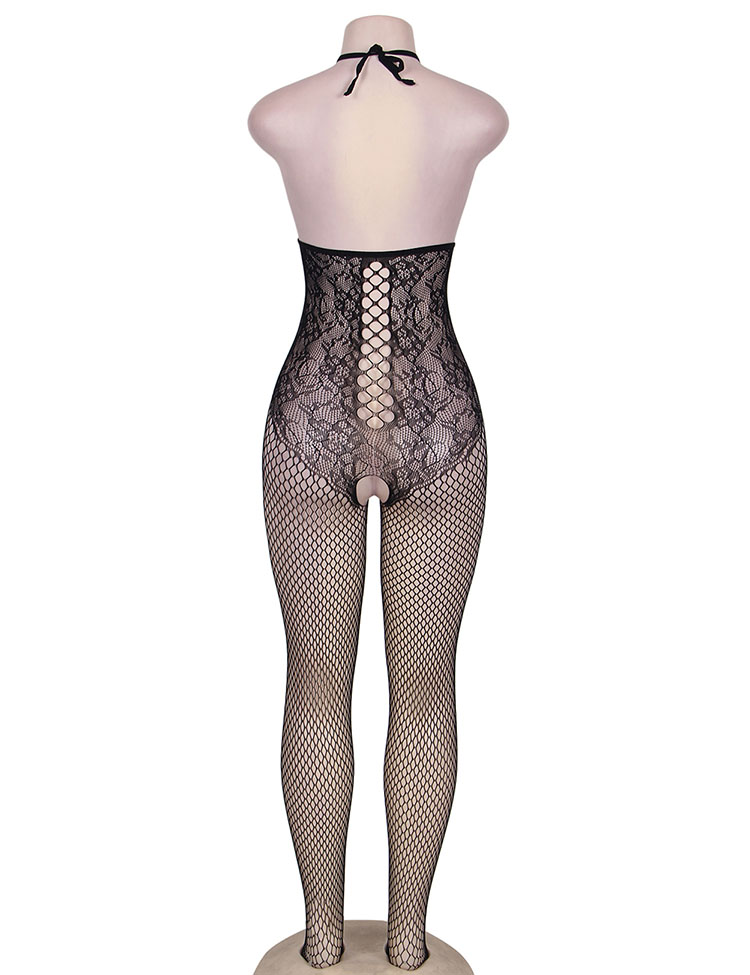 Plus Size Black Halter Fishnet Open Cup Bodystocking