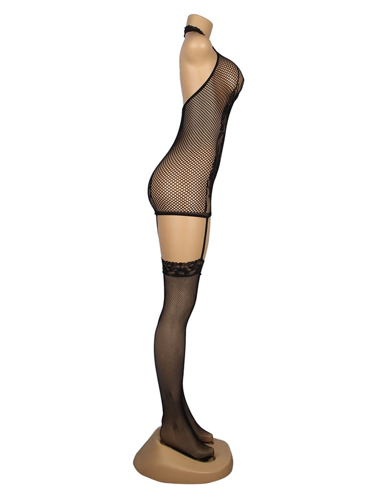 Plus Size Black Sexy Sleeveless Halter Fishnet Bodystocking