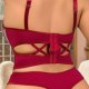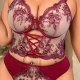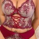 Plus Size Burgundy Lace Lingerie Set with Corset Top