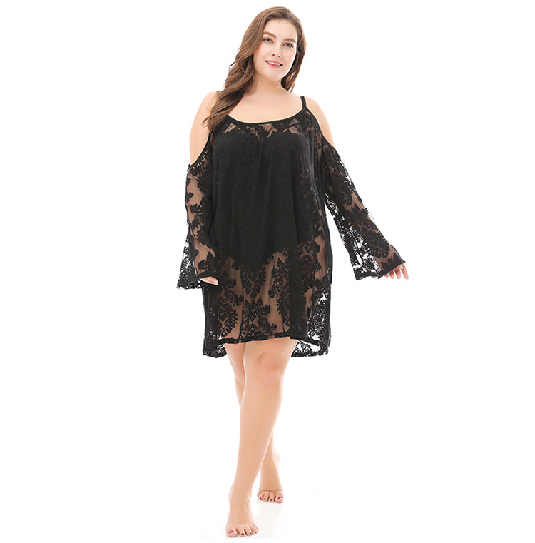 Plus Size Cold Shoulder Lace Beach Pullover Cover Up