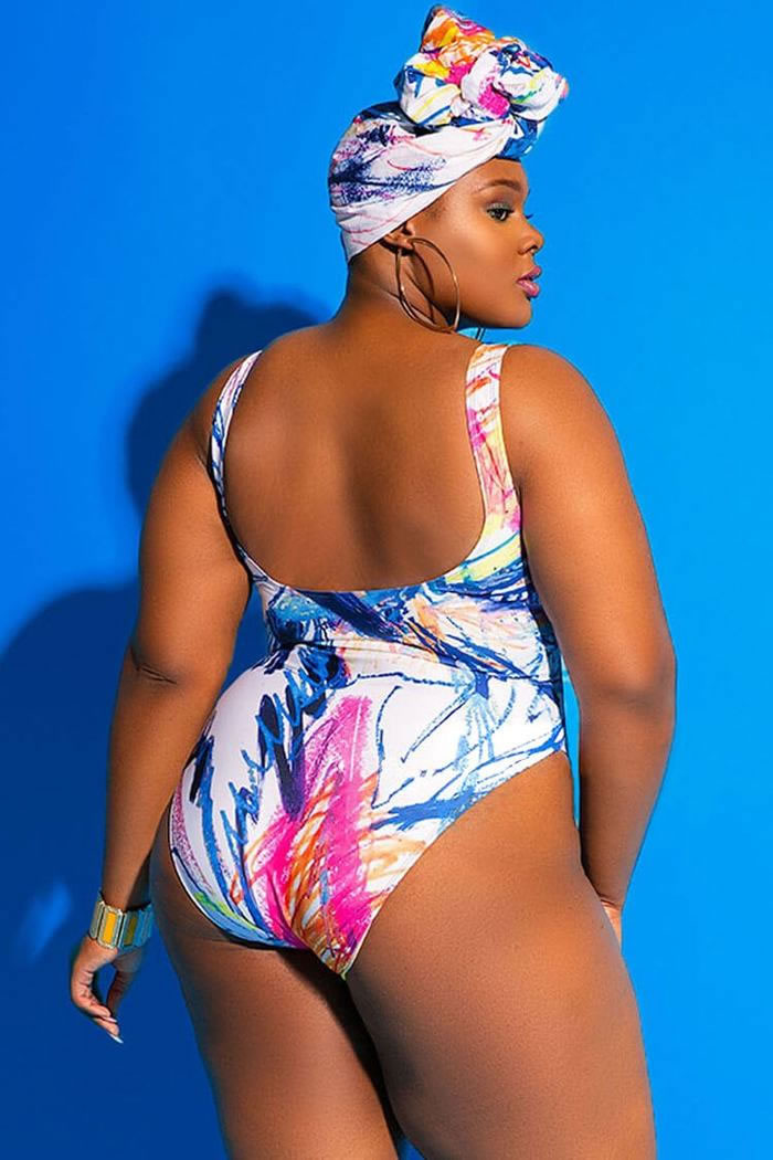 Plus Size Colorful Abstract Printed One Piece Swimsuit