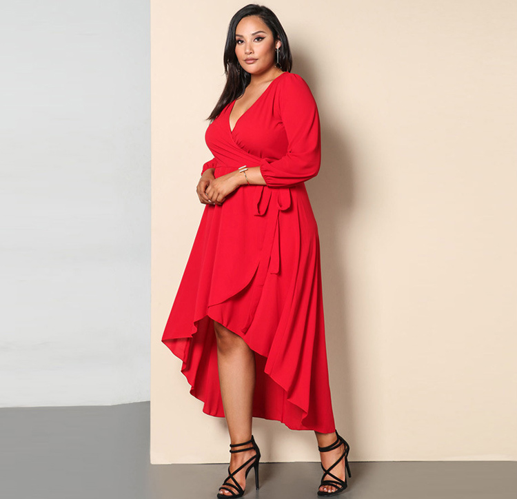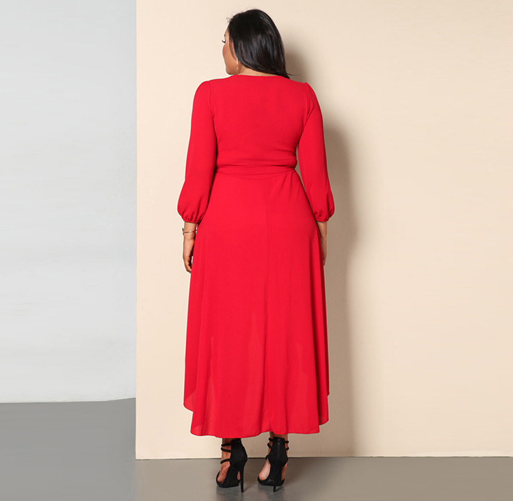 Plus Size Fashion Deep V-neck Long-sleeved Evening Party Maxi Dress