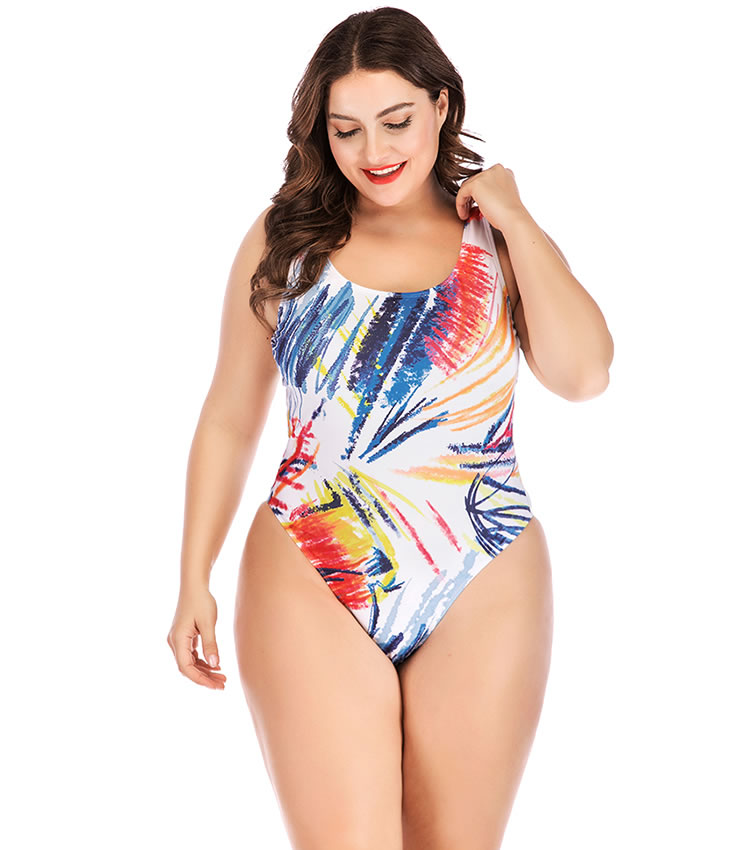 Bask under the summer sun in this cute swimwear featuring a colorful geometric design, a scoop neckline, shoulder straps, a scoop back, high cut sides, and a cheeky cut back.