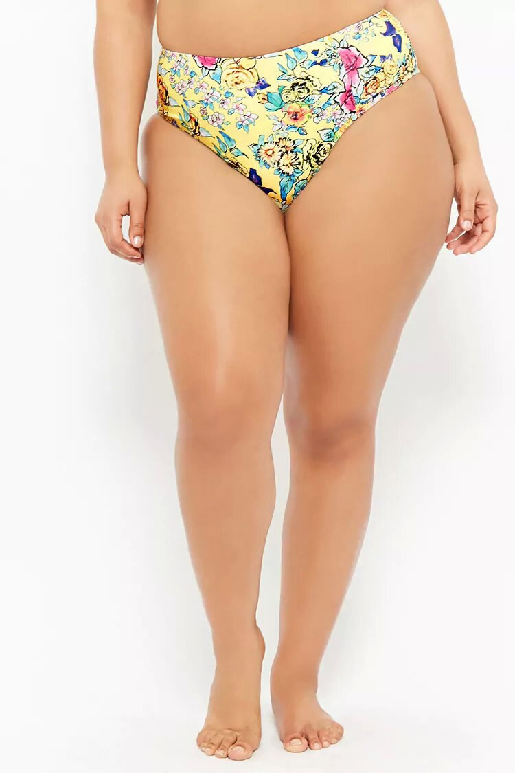 Plus Size High Leg High Waist Floral Crop Tank Bikini Swimsuit