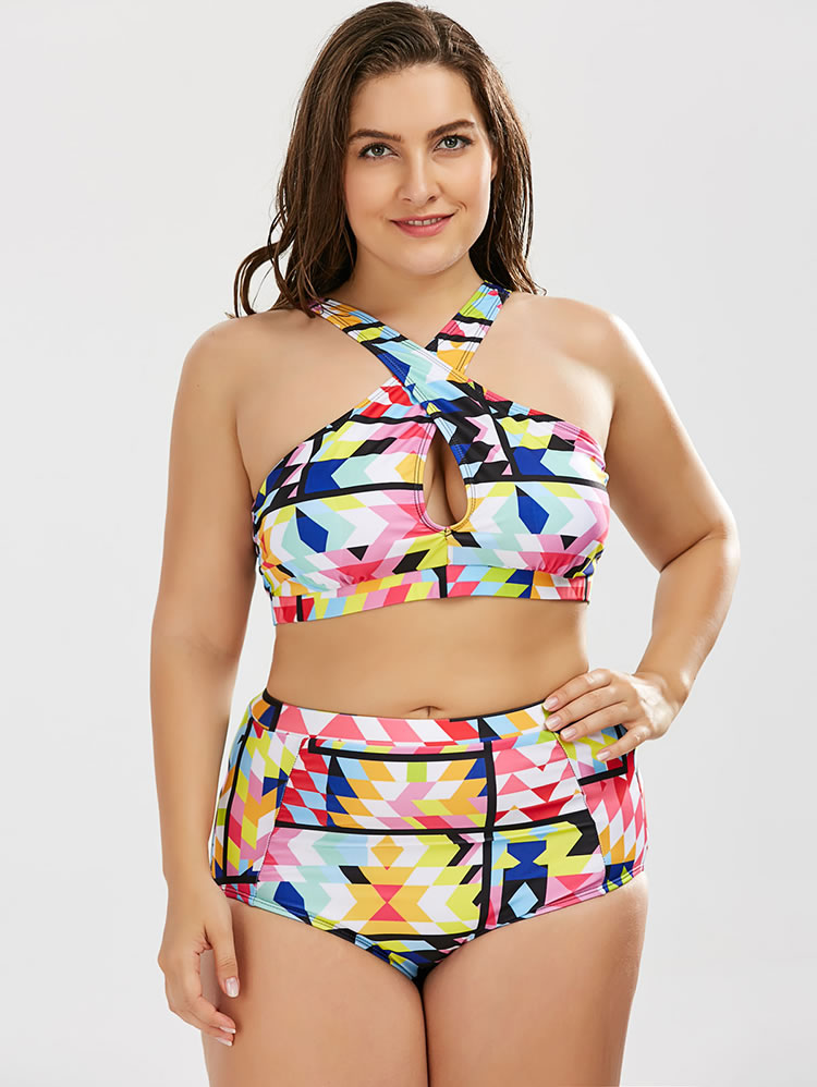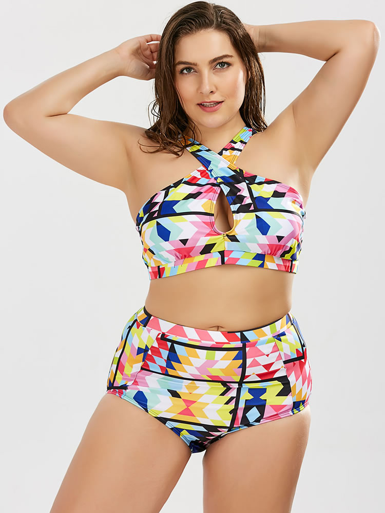 Plus Size Keyhole High Waisted Two Piece Swinsuit