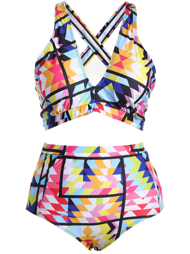 This boho style high rise bikini set featuring geometric stripe all-over printed, High neckline with front crissover keyhole design makes you sexy and attractive, Back self-tie, So it is easy to put on and take off. Vintage high waistline swim bottom keeps your hip in a good shape. You must have it for your vacation.