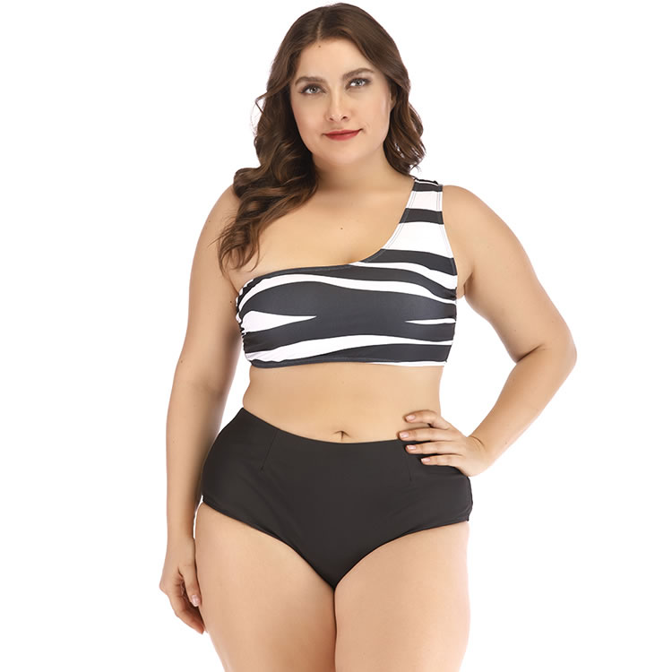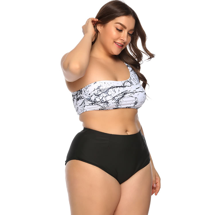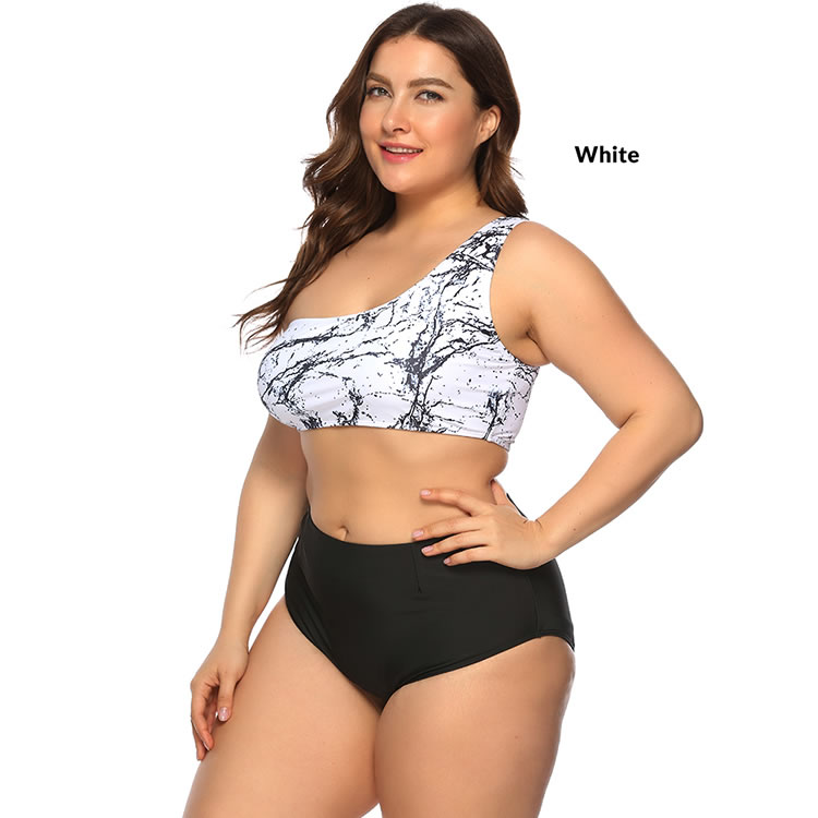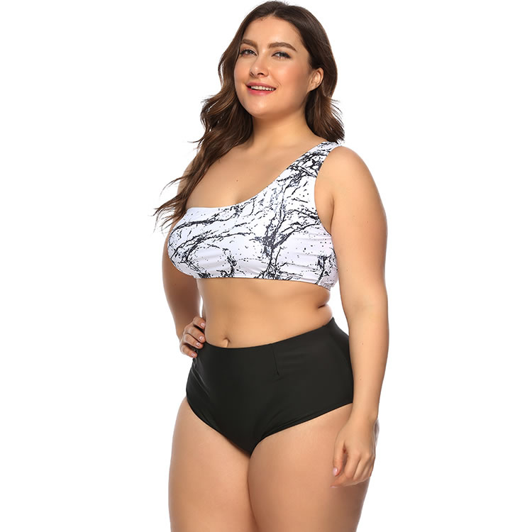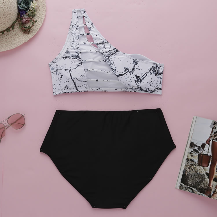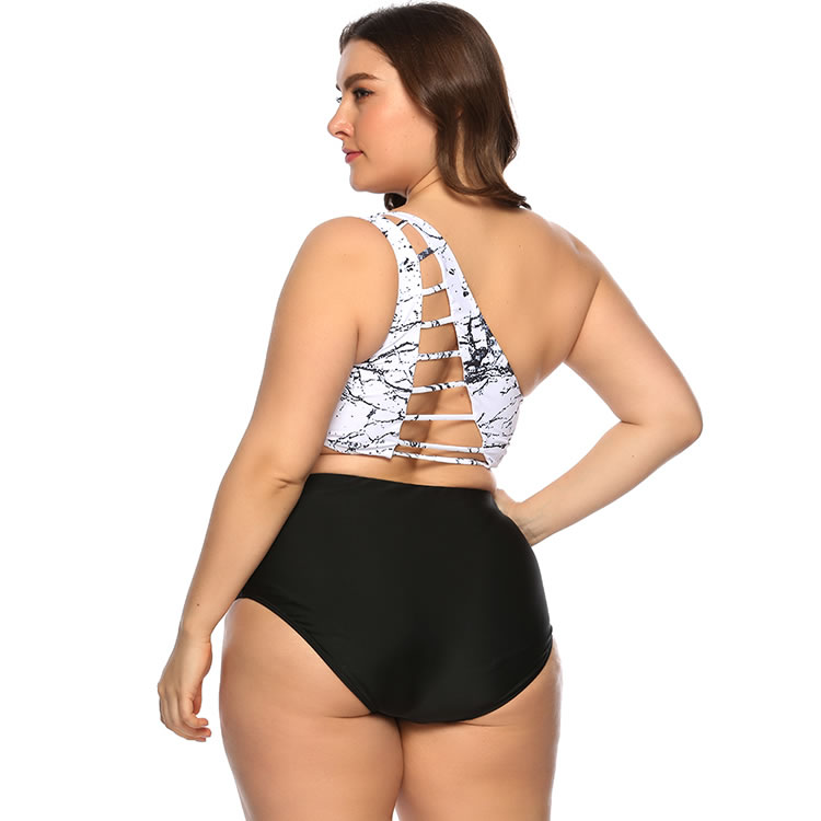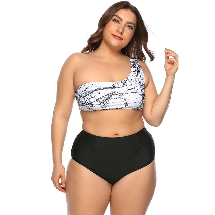 Soak up the sun in this exclusive plus size swimwear featuring a one shoulder style, a strappy back, a matching bottom with high waist and a cheeky cut back.