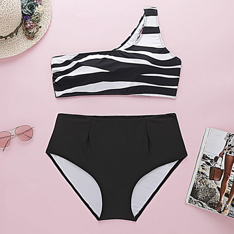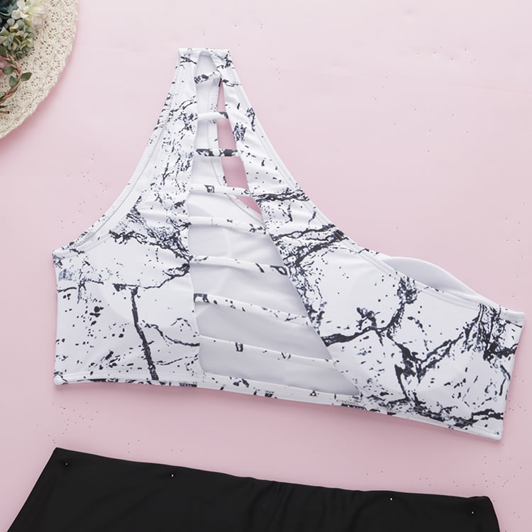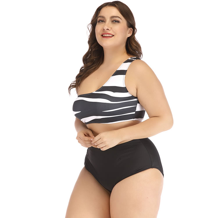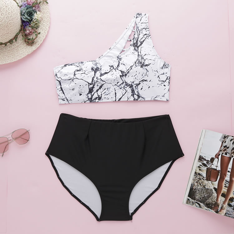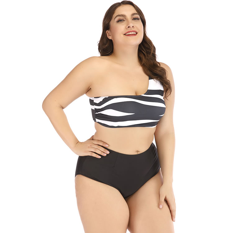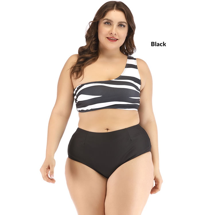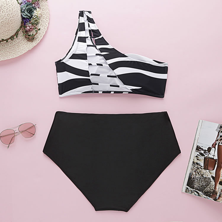 Soak up the sun in this exclusive plus size swimwear featuring a one shoulder style, a strappy back, a matching bottom with high waist and a cheeky cut back.