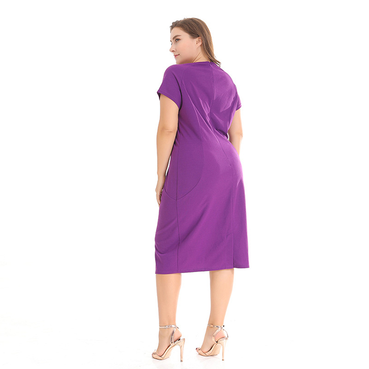 Plus Size Purple Short Sleeve Round Neck Midi Dresses