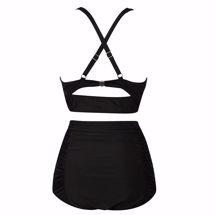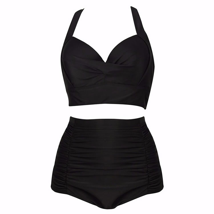 You’ll steal every beach goers heart when you show up in this two piece bathing suits. This plus size swimwear is made out made out of nylon and spandex, the bikini top has sweetheart neckline, built-in underwire push up cups with ruched, adjustable shoulder straps, a slide hook at back, to complete this trendy bikini set with a matching high waist bikini bottom with ruched detail and full coverage back.