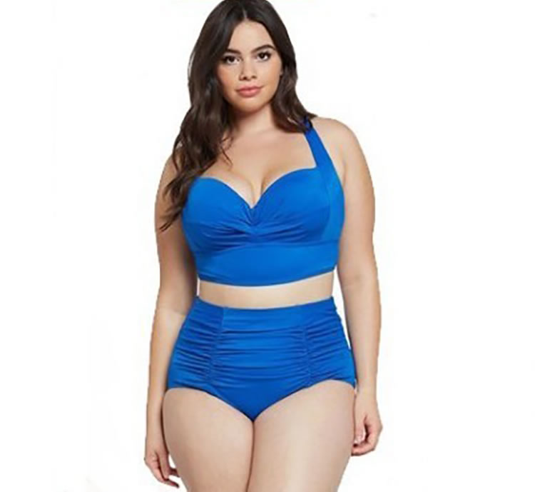 Plus Size Push Up Ruched High Waisted Bikini Swimsuit