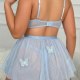 Embrace your feminine side with this enchanting baby blue lingerie set, designed to flatter and celebrate your curves. The set features a sheer bralette adorned with delicate floral embroidery and sweet butterfly appliqués on the straps, offering a whimsical touch. Paired with a matching flowy mesh skirt, also embellished with fluttering butterflies, this ensemble creates a soft, ethereal silhouette perfect for a romantic night in. The adjustable straps and comfortable elastic waistband ensure a personalized fit that feels as good as it looks.