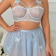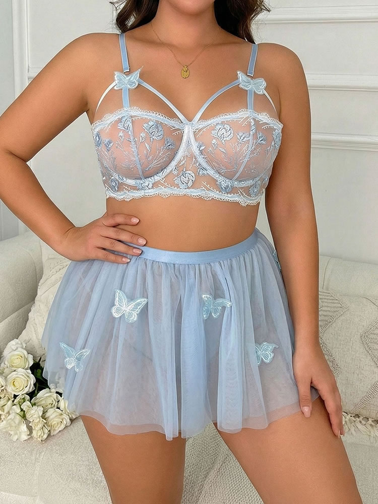 Plus Size Sheer Blue Lingerie Set with Butterfly Applique