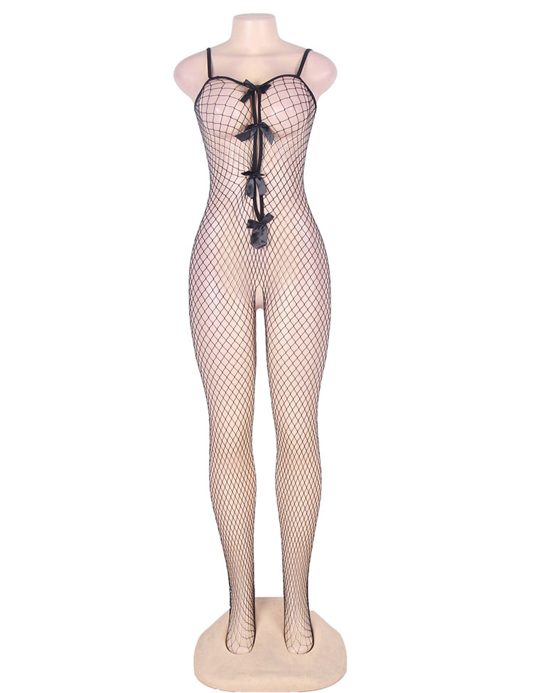 Plus Size Stretch Fishnet Crotchless Bowknot Bodystockings