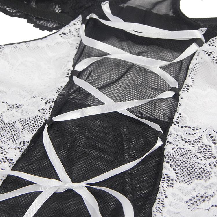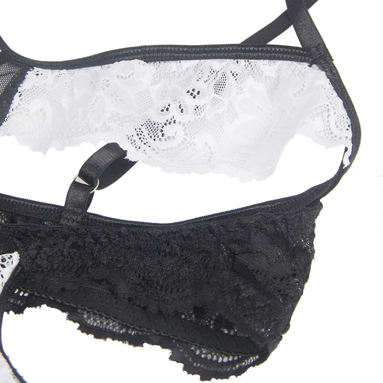 Plus Size White Lace Sexy Garter Belt Maid Costume with Leg Ring